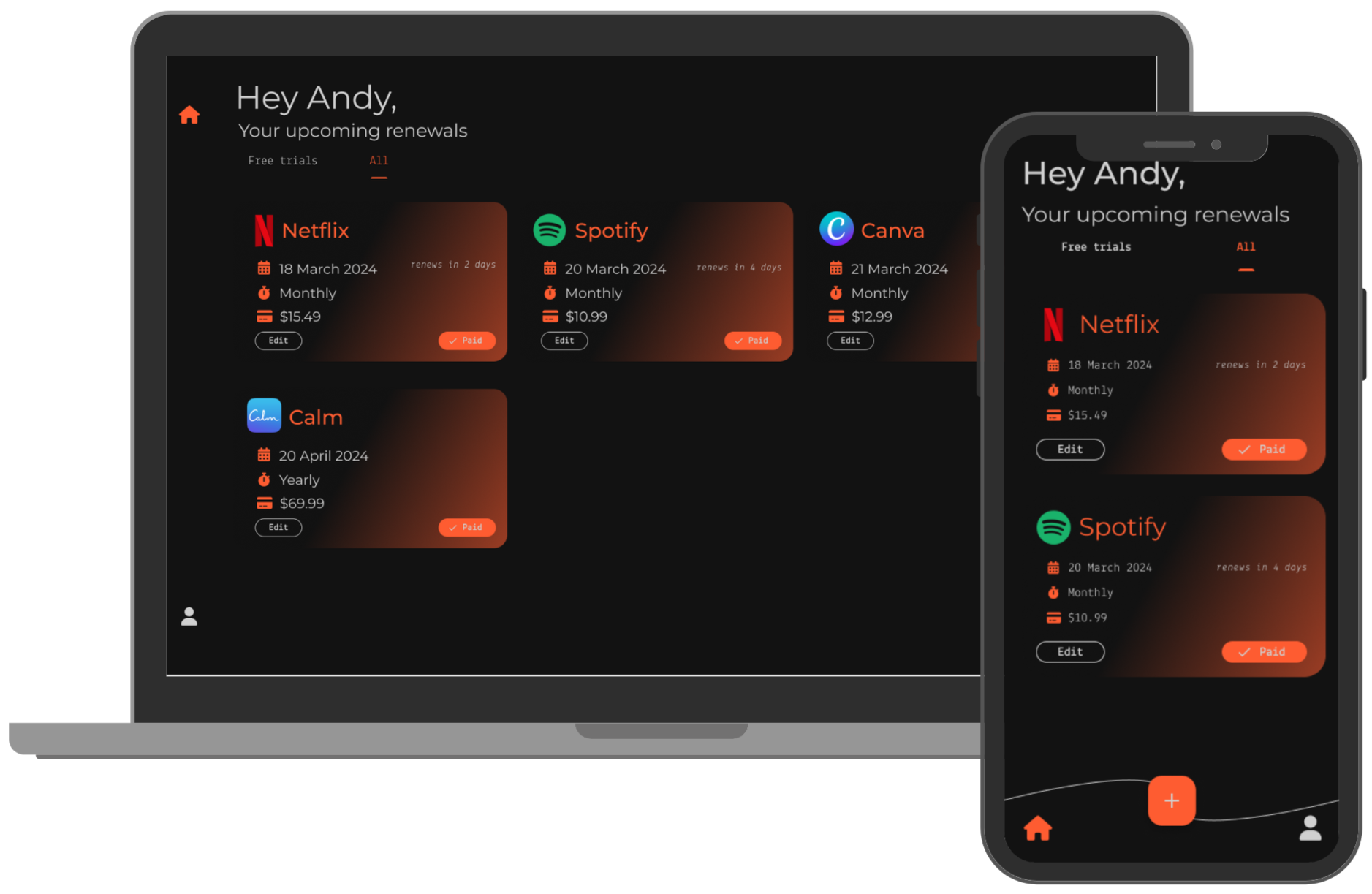 Your dashboard syncs across your devices so you can see your subscriptions anywhere