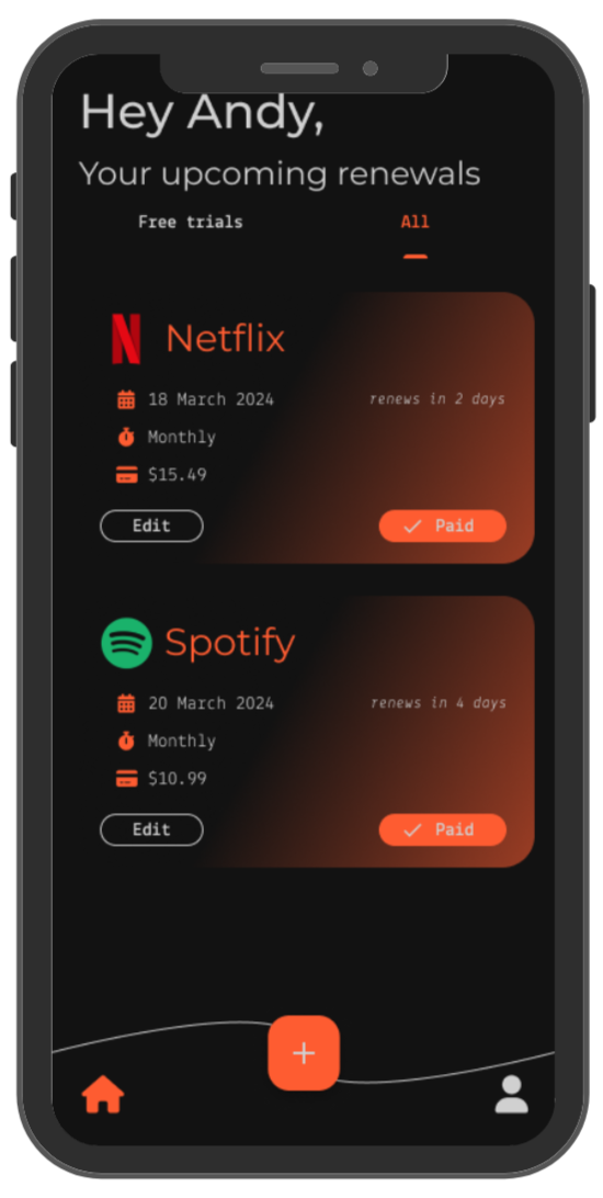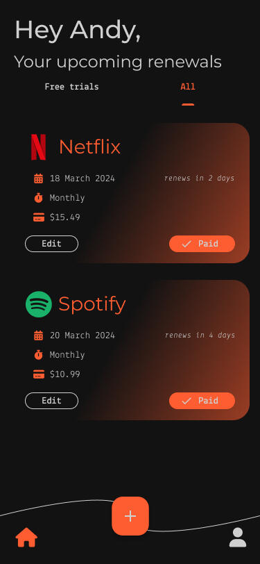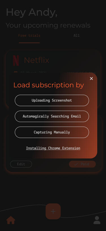 Take a screenshot of your Apple or Google Play subscriptions summary and we'll extract the details of those subscriptions so you can load them all at once