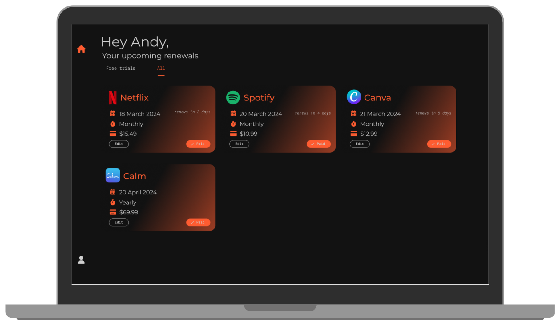 Keep track of all your software subscriptions in one place, whether for yourself or your household or your business.